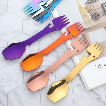 Cubiertos de camping 5 en 1, cuchara y tenedor de viaje Spork portátil de acero inoxidable