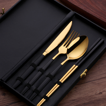 Vajilla de regalo con caja de regalo Juego de cubiertos Cuchara Tenedor Cuchillo y palillos Juego de cubiertos de oro Cubiertos de acero inoxidable