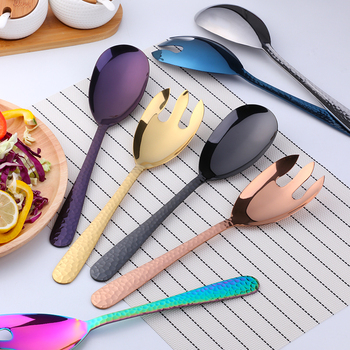 Restaurante Buffet usado cuchara y tenedor para servir ensaladas grandes herramientas de mezcla de ensaladas de frutas y verduras de acero inoxidable