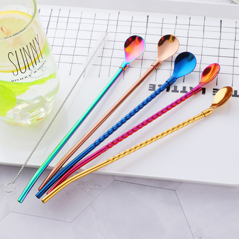 Cuchara de paja de miel de acero inoxidable respetuosa con el medio ambiente para barra de bebidas, cuchara de filtro de café, pajitas de té