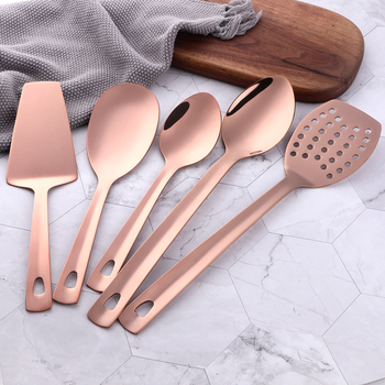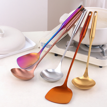 Juego de utensilios de cocina, tornero de acero inoxidable y cuchara para sopa, utensilios para freír bistec, espátula de cocina dorada, cucharón