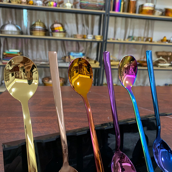 Cuchara de postre de acero inoxidable Mango creativo Cuchara de helado Cucharadita de café pequeña Cuchara de cena Vajilla
